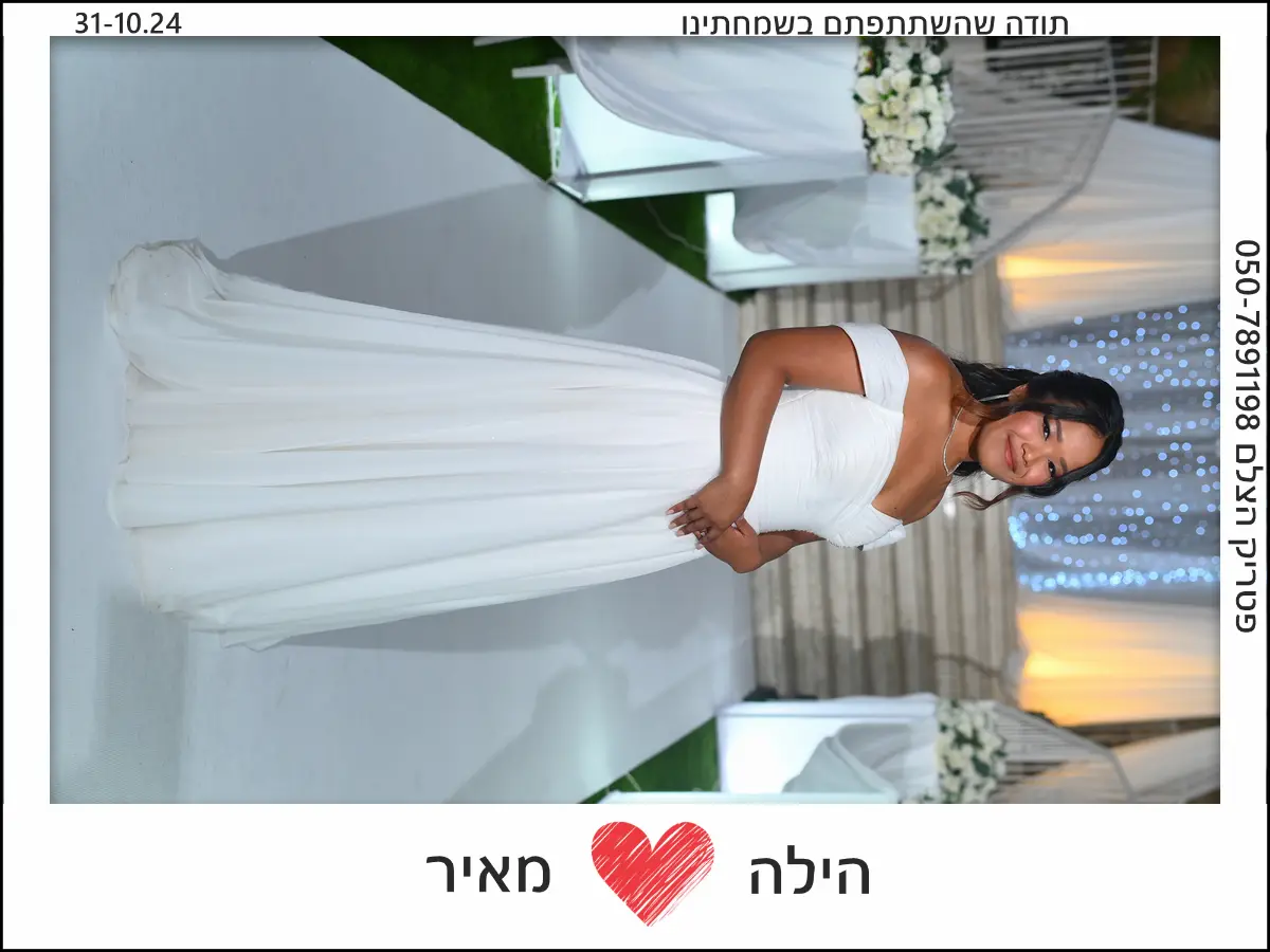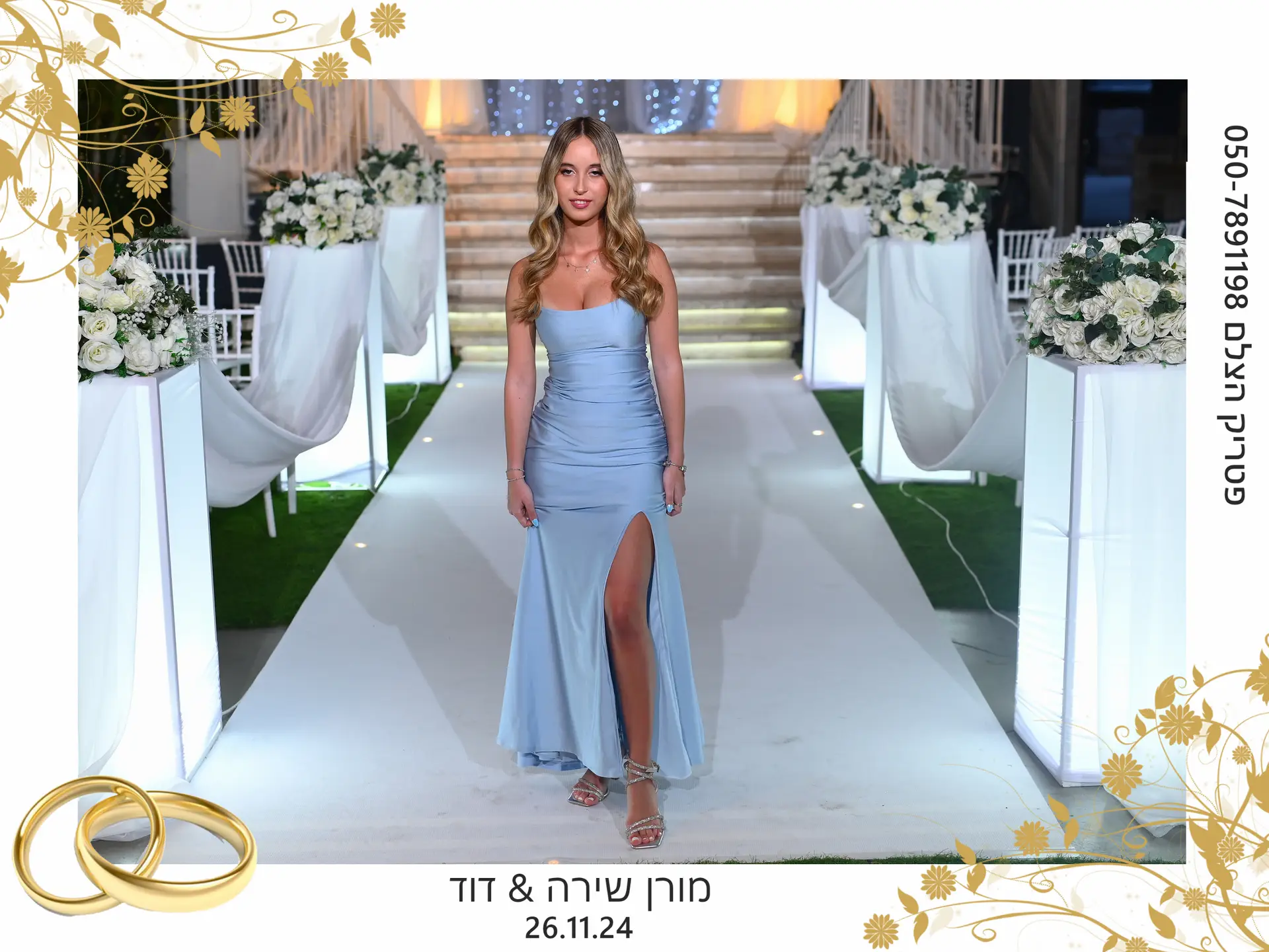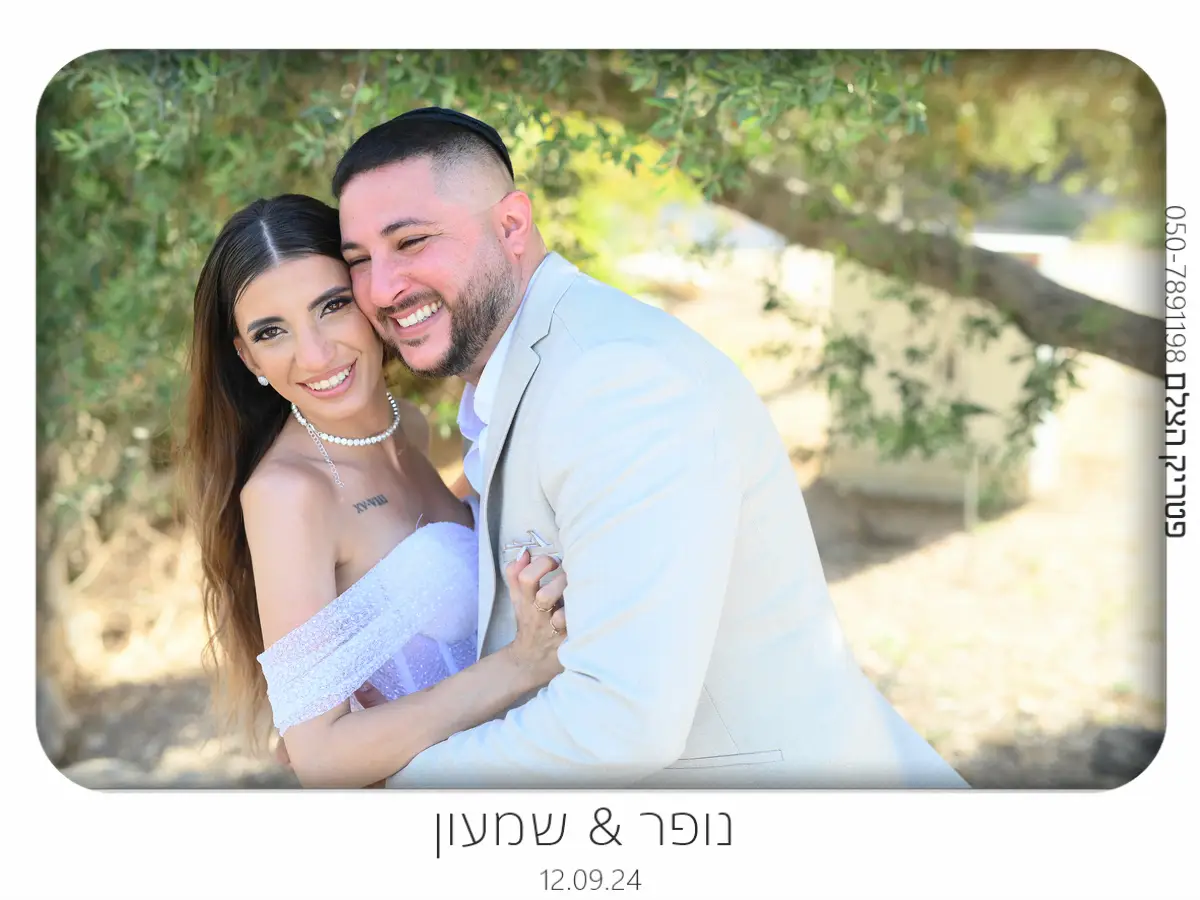 האם אפשר להוסיף עיצוב אישי? כן! ניתן להוסיף מסגרת עם שמות, תאריך, משפט תודה, גרפיקה ועוד. פטריק הצלם ייתן לכן גישה למאגר של אלפי מסגרות לבחירה .